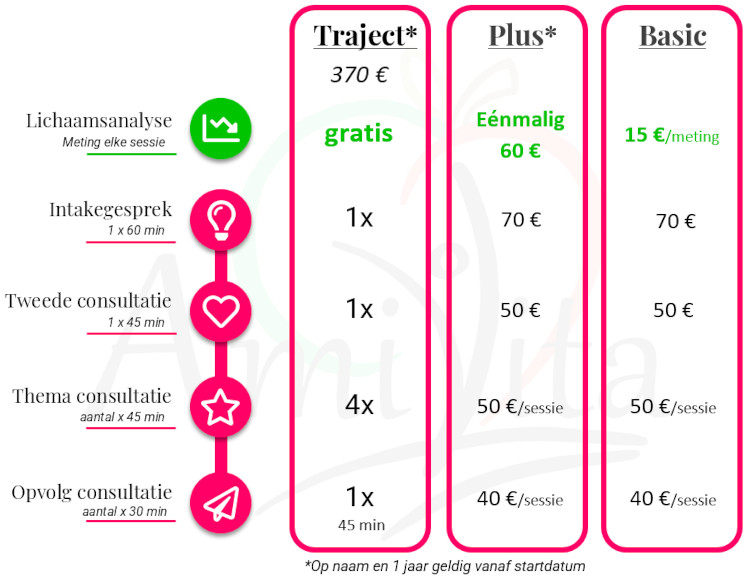 Als erkend diëtiste hanteer ik tarieven conform de richtlijnen van de Vlaamse Beroepsvereniging van Diëtisten (VBVD).